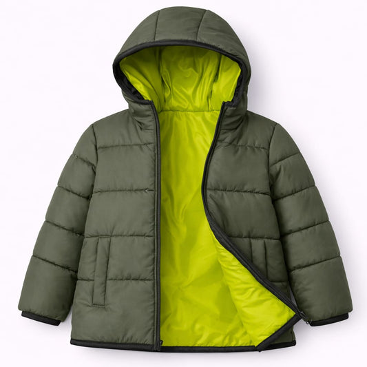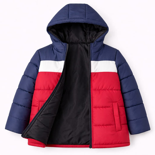 Colorblock Navy & Red Kids Puffer Jacket with Hood
