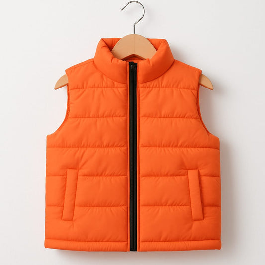 Kids Orange Puffer Vest with Black Zip – Warm & Lightweight Winter Gilet