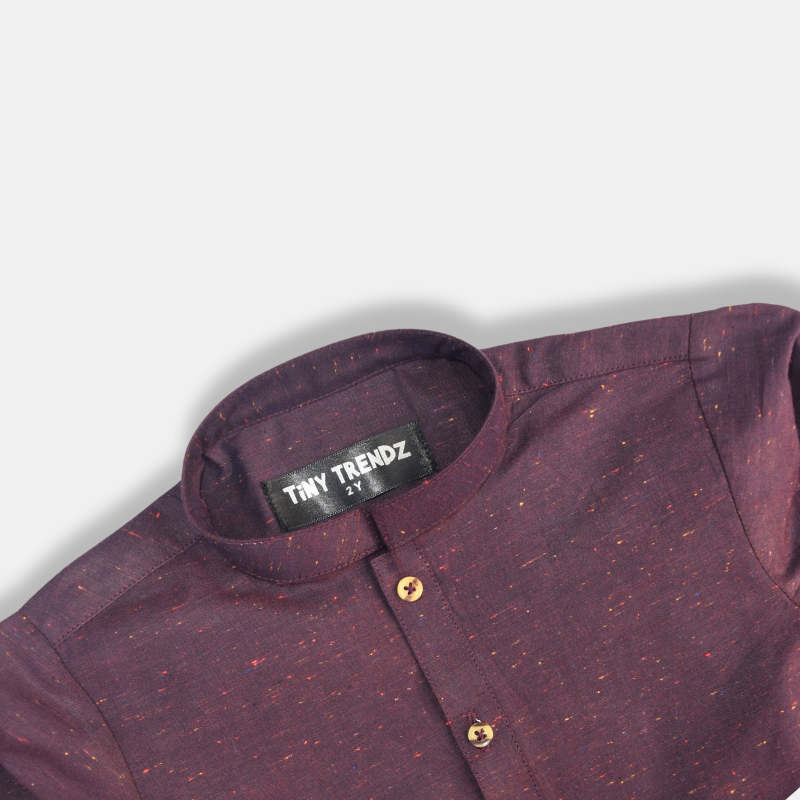 Elevate your little one's festive wardrobe with this purple cotton kurta, designed with a unique multicolor fleck print for a stylish and sophisticated look. Made from soft, breathable cotton, it ensures all-day comfort while keeping the traditional charm intact. The mandarin collar and sleek buttons add a refined touch to this versatile piece.