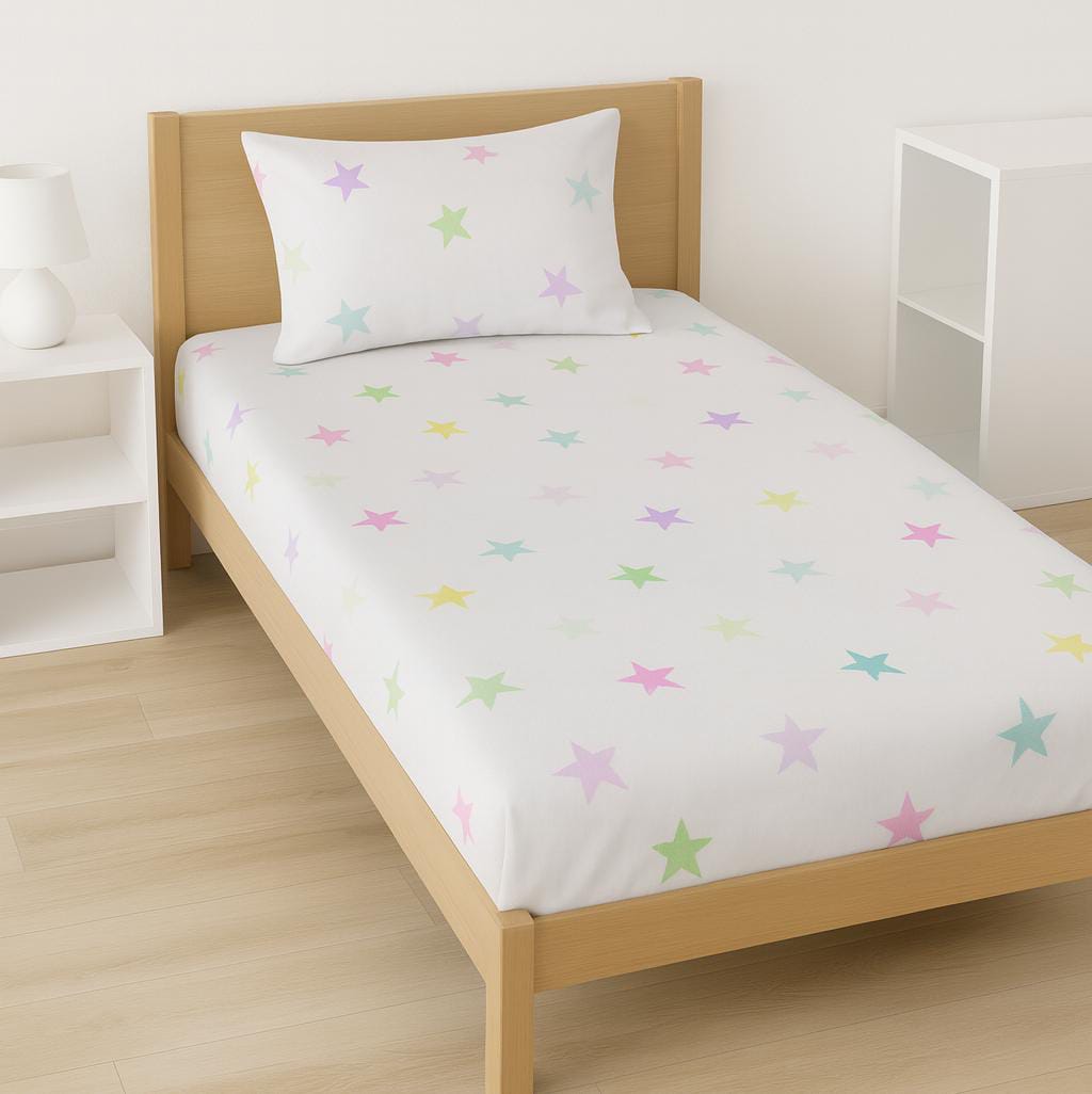 Pastel Dream Stars Bedsheet – Single Cotton Bedding for Kids